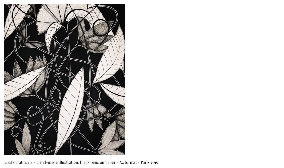 Marie Es-Borrat: My theme “Nature is part of us” was born in 2012 from a powerful observation. I realized that we are intrinsically linked to our environment. We are an extension of nature, and without it, we cannot exist.