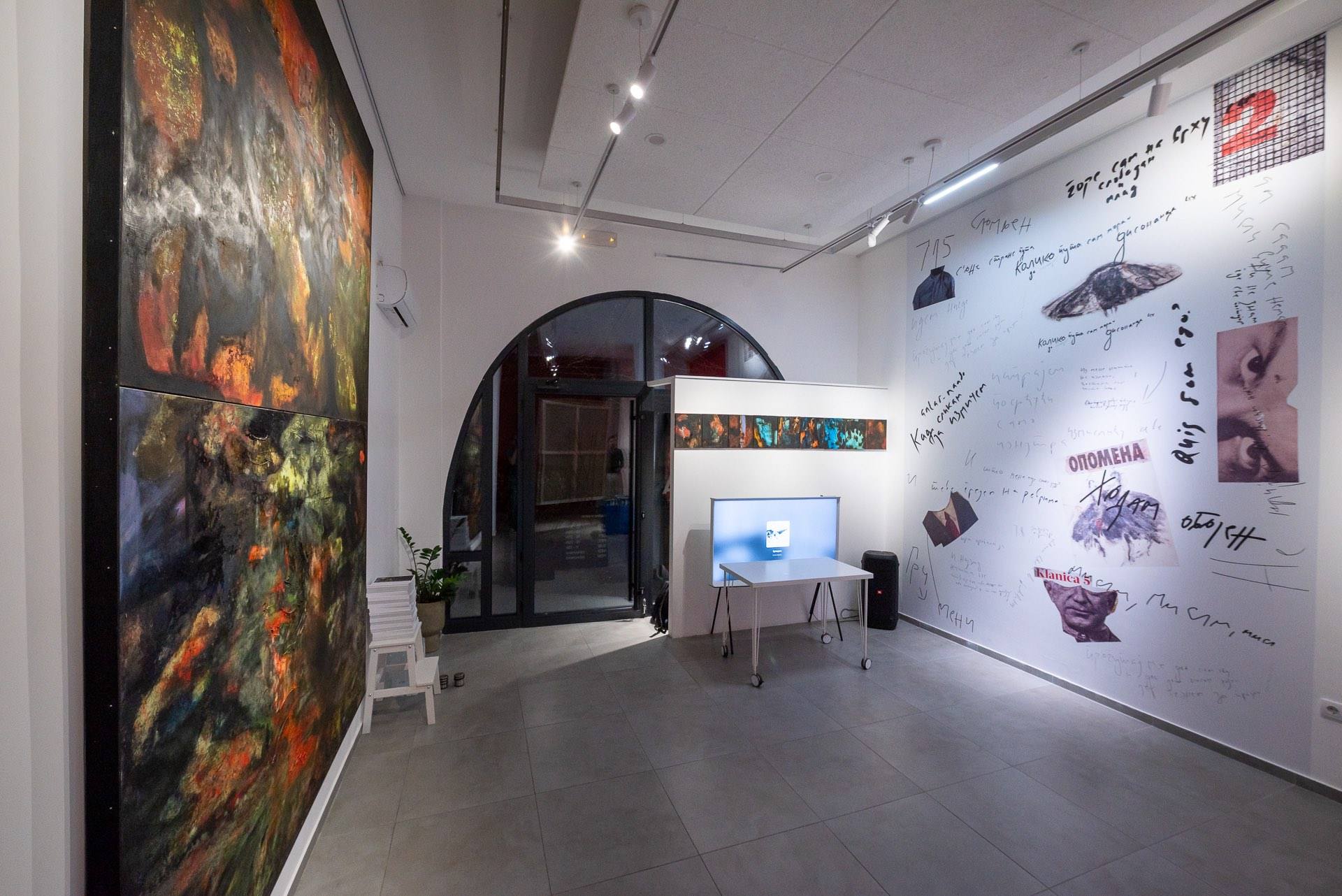 Serija radova „Zapisi 72“ okuplja i velika platna i radove intimnijeg formata, koji zajedno stvaraju ambijentalnu celinu — prostor u kojem se slika ne posmatra izolovano, već kao deo složenog, međusobno prožetog vizuelnog sistema.
