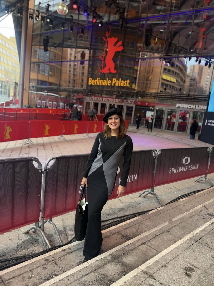 Swiss actress Manuella Wenger stunned at the 76th Berlinale, wearing Sisters Code outfits: the SCA Iconic Maxi Dress in Jet Black & Grey, crafted from virgin wool and paired with the Reversaya Tote, a piece born from creativity, community, and sustainable development.
